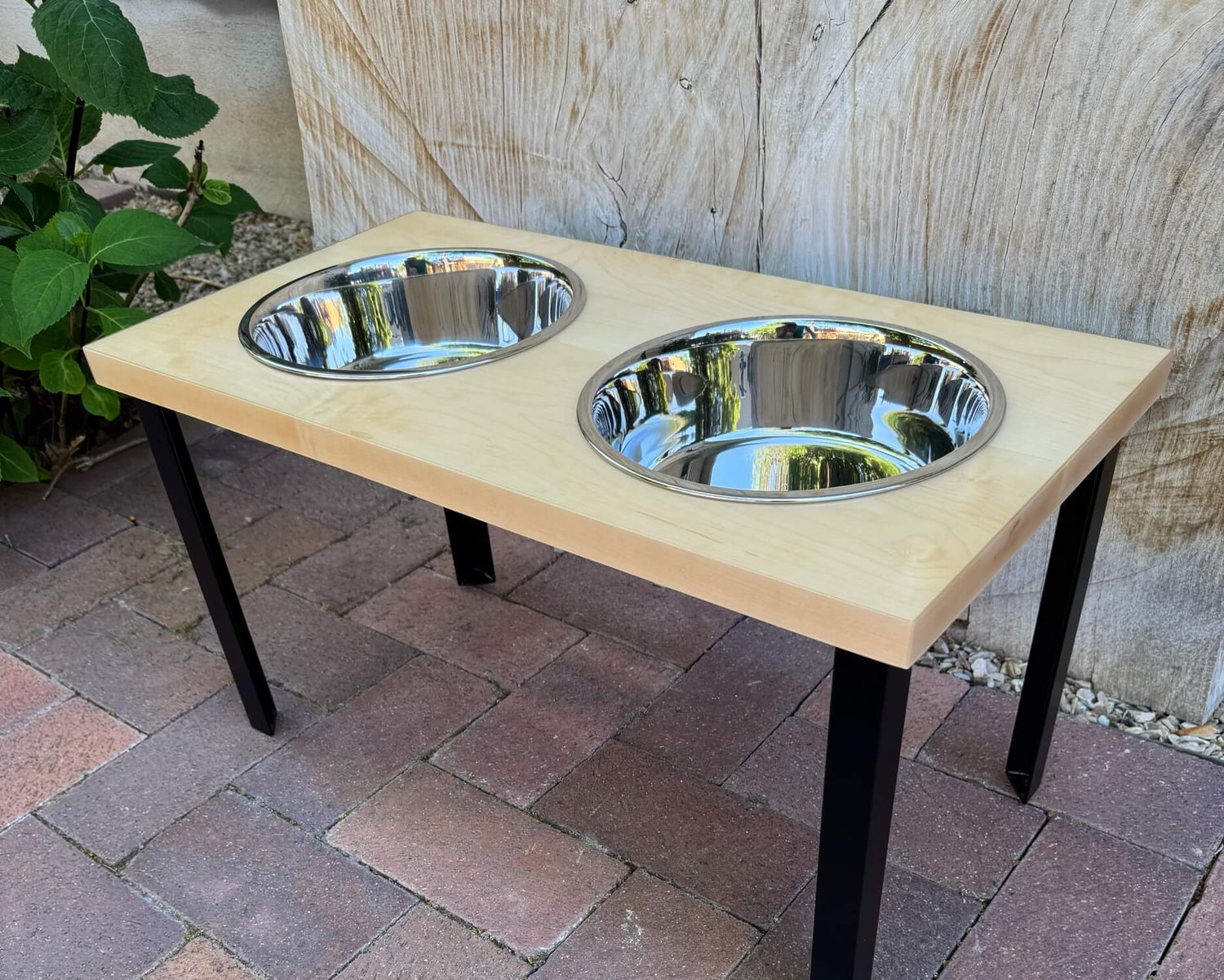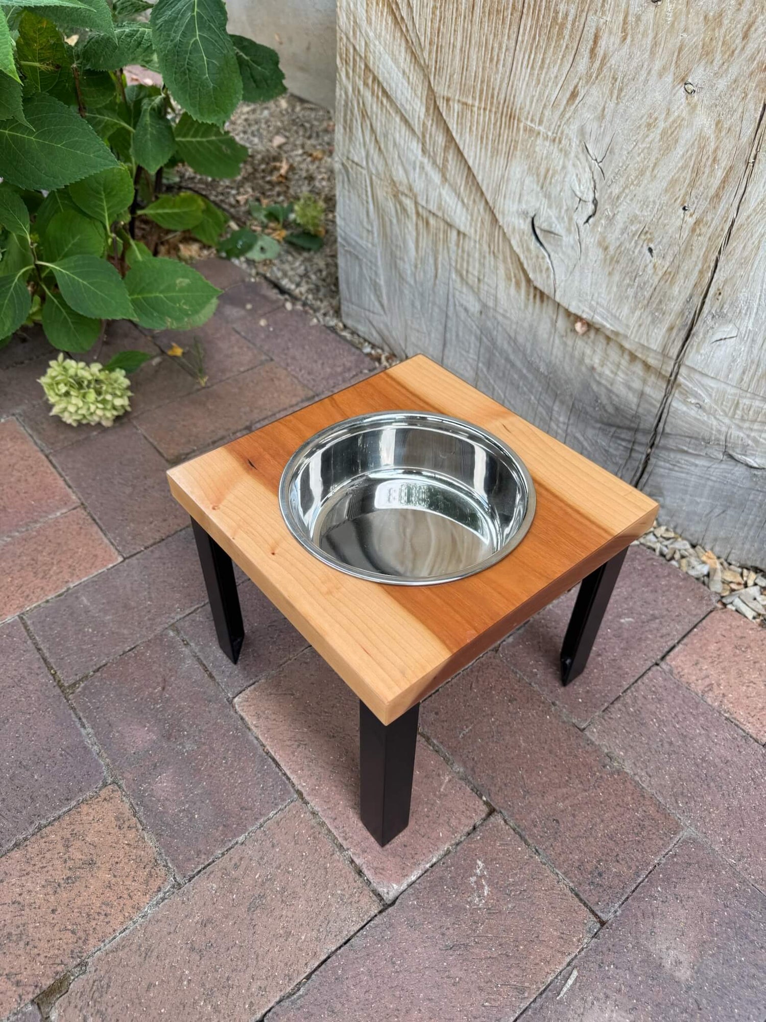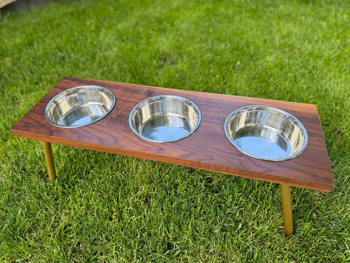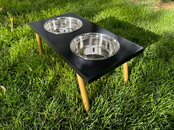 Elevated Pet Products offers a safe and elegant way to provide your pet with food and water. Premium cabinet-grade wood in walnut, cherry, or designed in a mix of both is planed and cut to size. Wood is then sanded, coated in clear or colored epoxy resin, and finished with a gloss or satin sheen. A polyurethane seal adds a protective layer so stands are 100% water-resistant. The multi-step process of primer, paint, and layers of clear coat ensure life-long durability.