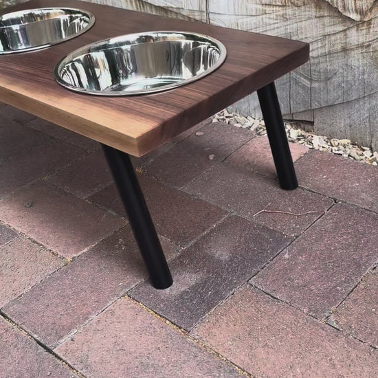 Large, Walnut, 2-Bowl, 8", Black slanted legs