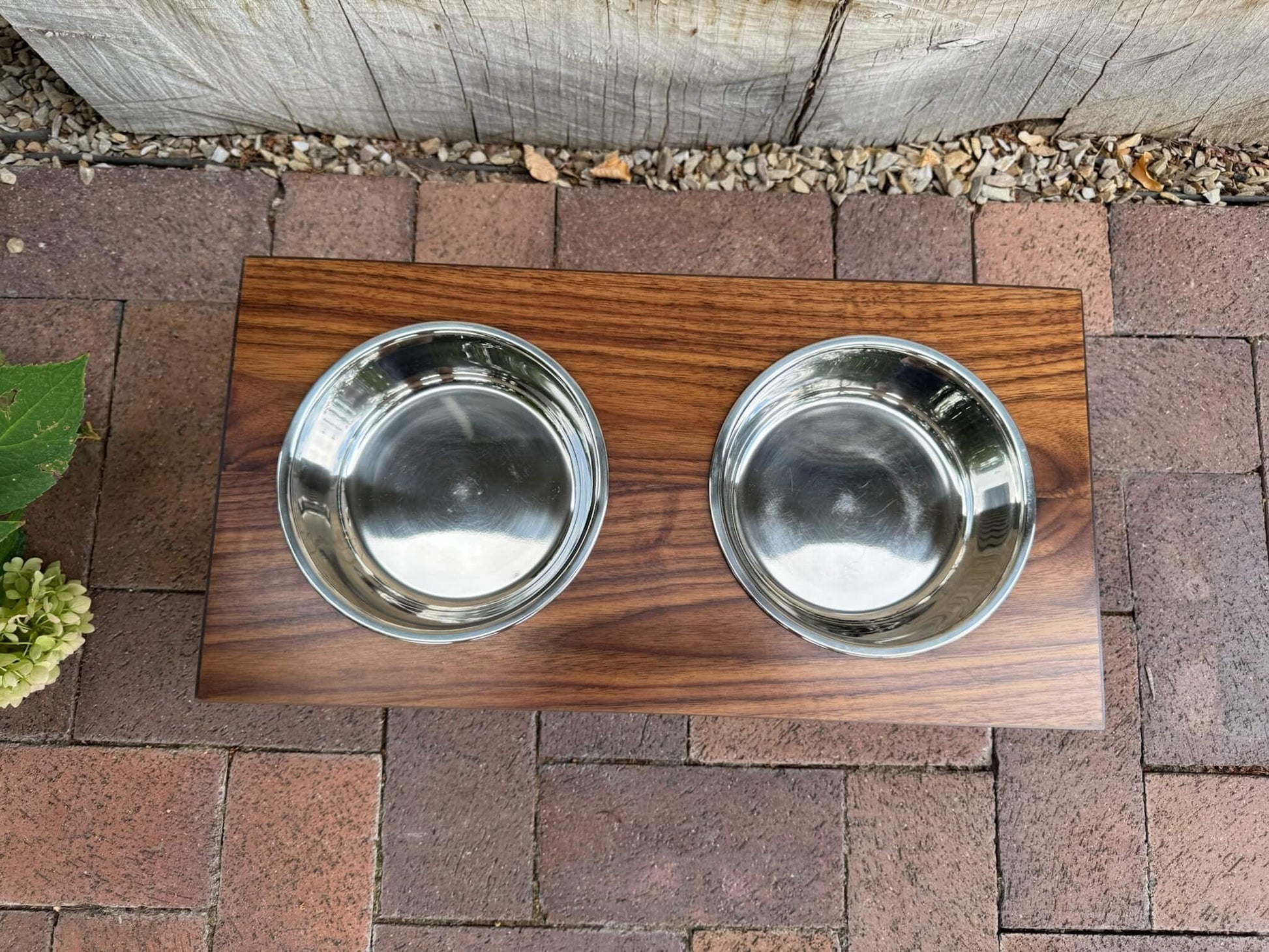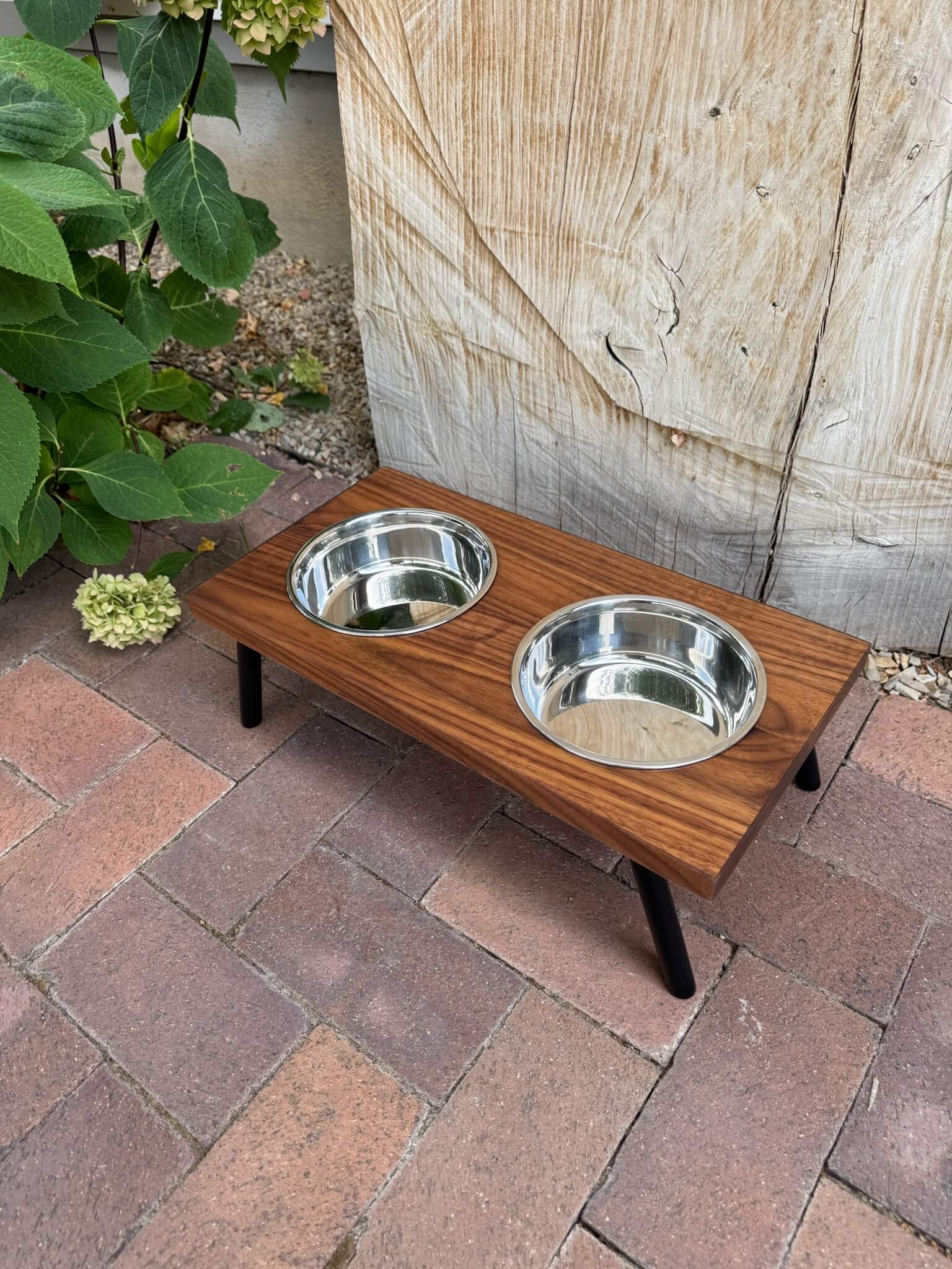 Medium, Walnut, 2-Bowl, 6", Black slanted legs
